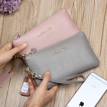 新款时尚牛皮女式手拿包韩版真皮女士零钱包手拎包包 女 藕紫