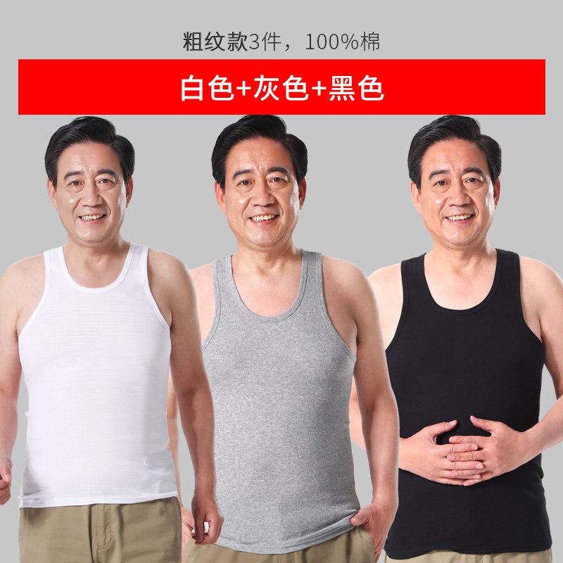 恒源祥纯棉男士背心老人白汗衫春秋跨栏大码内穿老年人老头衫夏季_642_467 175/XL 抗菌【修身款】黑色+白色+浅灰