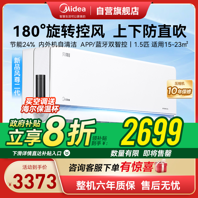 美的空调挂机1.5匹 静新风 新一级能效 变频节能冷暖两用 卧室壁挂式家用空调KFR-35GW N8XF1-1