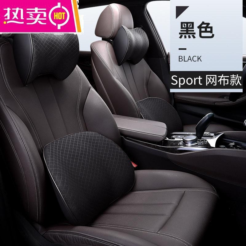 2022新款靠枕汽车内护腰轿车坐垫记忆棉腰靠主驾驶护颈枕座椅头枕_266 网布腰靠+头枕-黑色