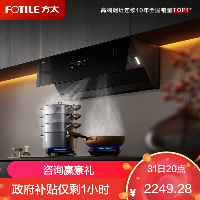 方太(FOTILE)油烟机官方25风量抽吸油烟机家用侧吸烟灶联动小尺寸JCD18TB