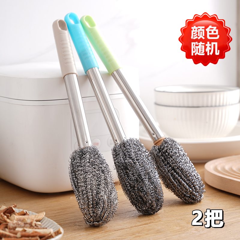 带柄钢丝球刷子长杆洗锅不生锈清洁厨房不伤手洗碗瓶罐不掉渣灶台 升级款2把钢丝球刷加长手柄不锈钢