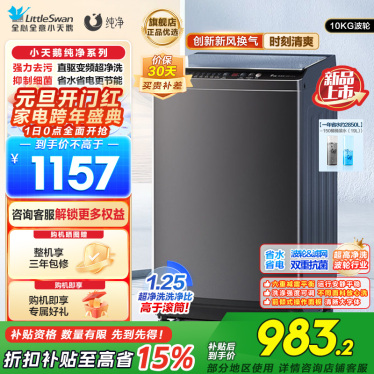 小天鹅(LittleSwan)洗衣机波轮全自动10KG大容量智能预约省水省电宿舍租房家用以旧换新一级能效TB10V27T