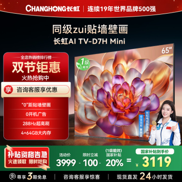 长虹电视65D7H Mini 65英寸电视 AI TV壁画 DeepSeek MiniLED 4K超高清平板电视政府补贴