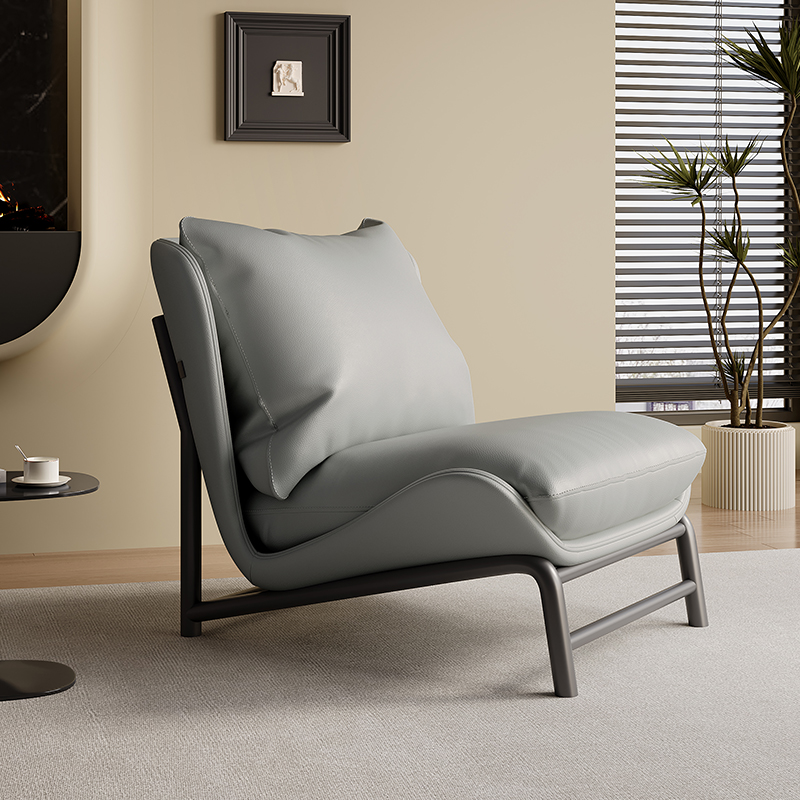 青木川 意式轻奢简约现代单人沙发椅可躺懒人客厅2024新款阳台书房办公沙发宿舍卧室小户型网红休闲椅子 深灰色+超纤维皮软包 单人椅
