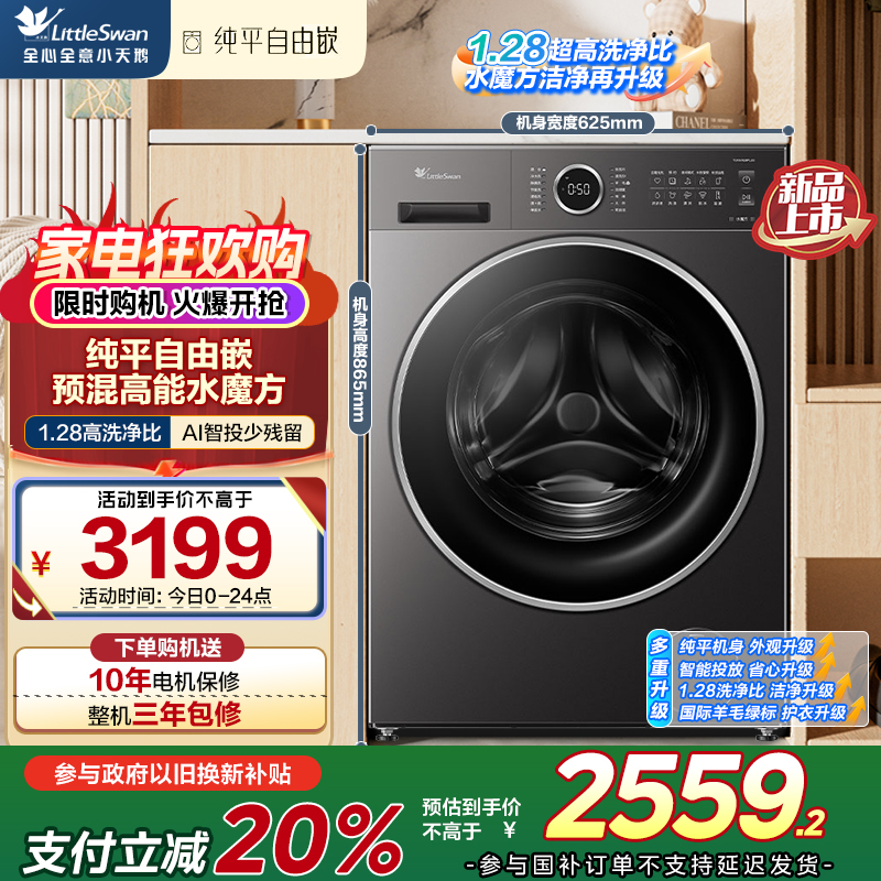小天鹅(LittleSwan)滚筒洗衣机全自动家用 TG10V628PLUS 水魔方 10公斤 内衣洗 1.28高洗净比