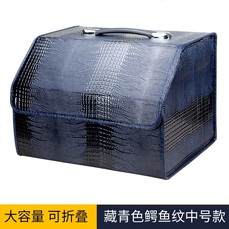 后备箱储物箱汽车收纳箱车载置物箱多功能折叠收纳箱尾箱整理杂物 藏青色中号【鳄鱼纹】【不带中间隔板】