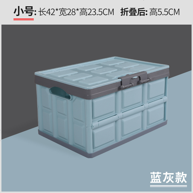 后备箱储物箱车载收纳箱汽车用品大全车内尾箱收纳盒置物整理箱_879_612 小号蓝灰款_【二代升级款_带锁扣】