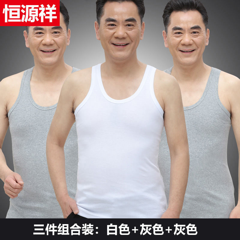 恒源祥中老年人男士背心男纯棉爸爸大码老头汗衫宽松打底汗衫内穿_1 190(XXXXL) 灰色+灰色+白色