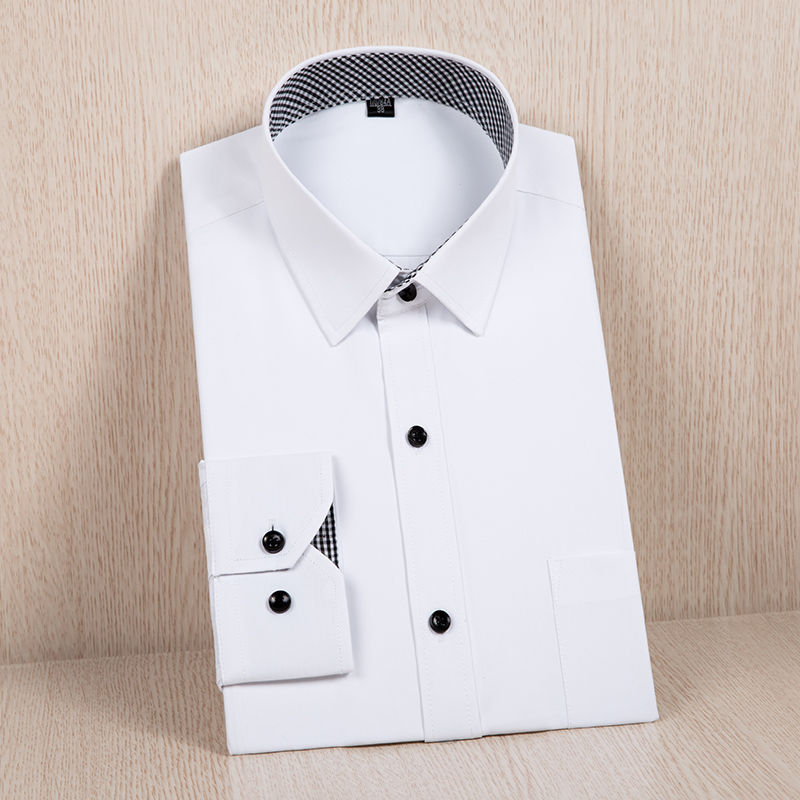 秋冬白衬衫男士长袖衬衣韩版潮流休闲纯色正装休闲商务职业工装寸_44 39(130-140斤) 长袖款BK白色(耐脏耐磨衣领设计)