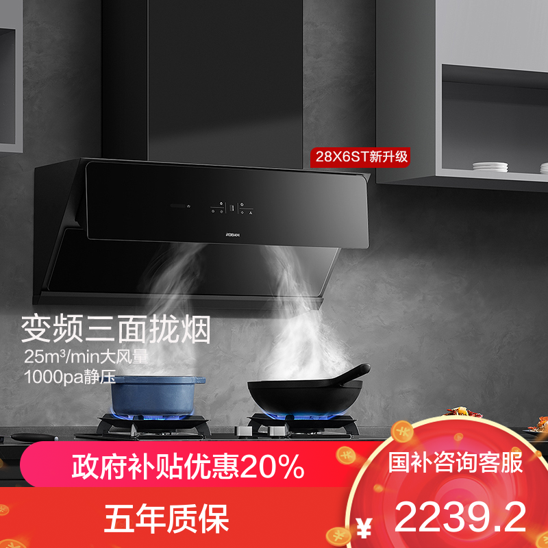 老板(Robam)油烟机28X6ST变频油烟机25风量抽油烟机1000Pa超强静压低噪音挥手感应智能控制家电油烟机