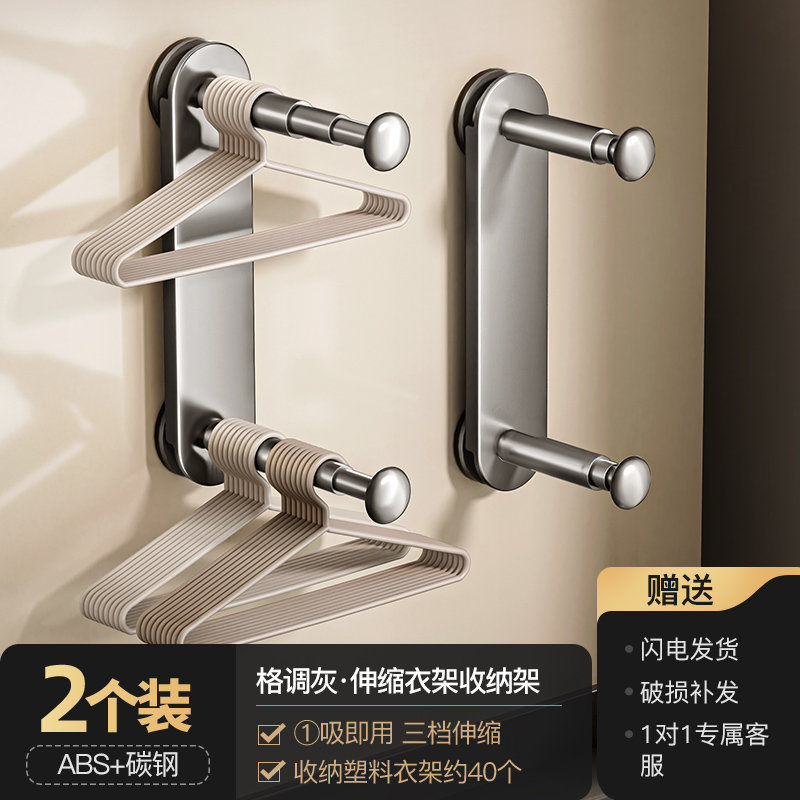 吸盘阳台衣架收纳神器免打孔家用多功能挂钩伸缩挂衣架子墙上壁挂 枪灰色吸盘衣架收纳架2个装
