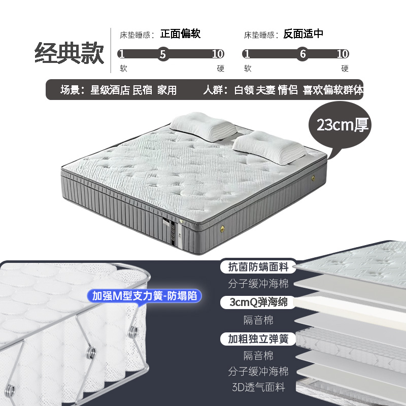 星级酒店床垫天然乳胶记忆棉床垫3E椰棕黄麻软硬两用护脊3D床垫 经济款(客服柔软型23cm厚 180*200cm