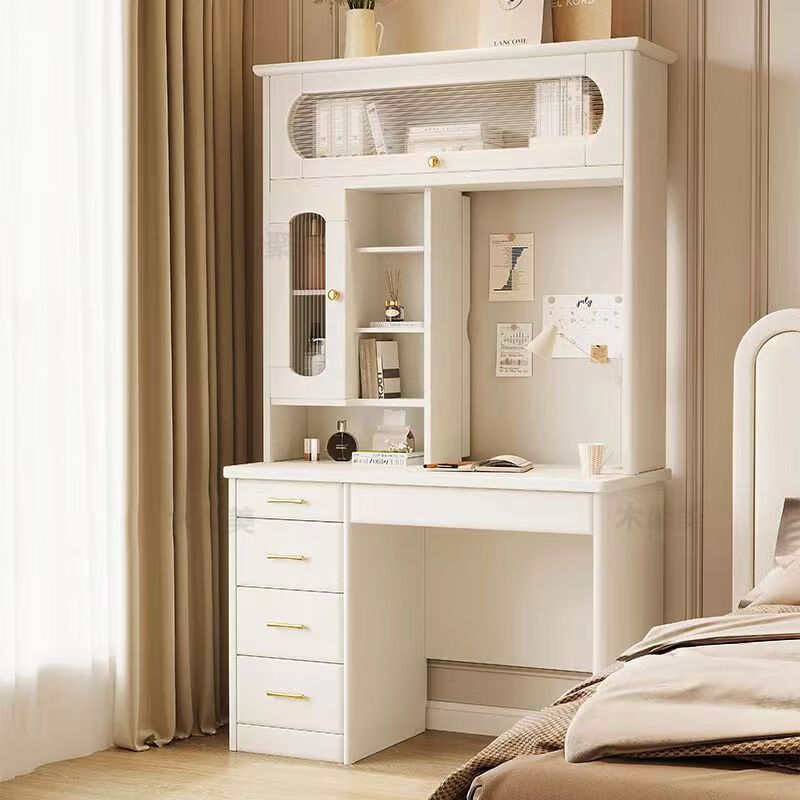 青木川 现代简约实木梳妆台主卧室房间床头收纳柜斗柜一体书桌推拉镜子可以隐藏化妆桌白色 白色化妆桌【斗柜在右】