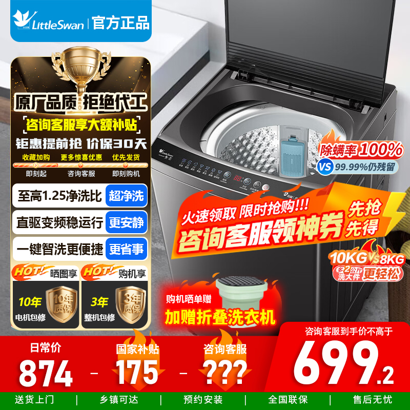 宝贝收到了,质量很好,是10Kg的,小天鹅,操作简单,满意。