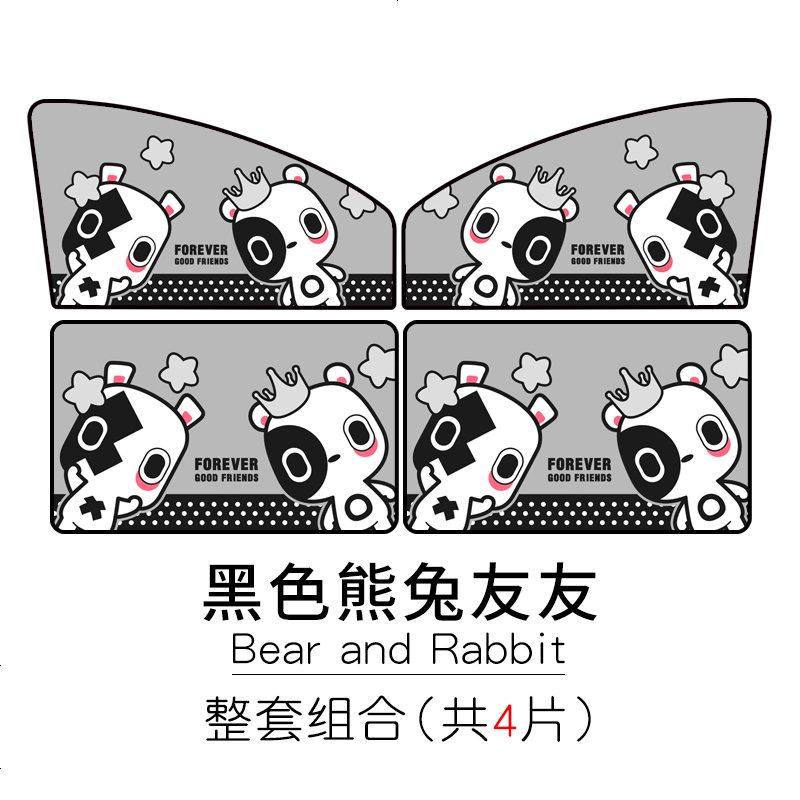 汽车车窗遮阳帘私密防晒隔热遮阳挡车载侧窗磁吸窗帘遮阳板遮光板 黑色熊兔友友-整套4片