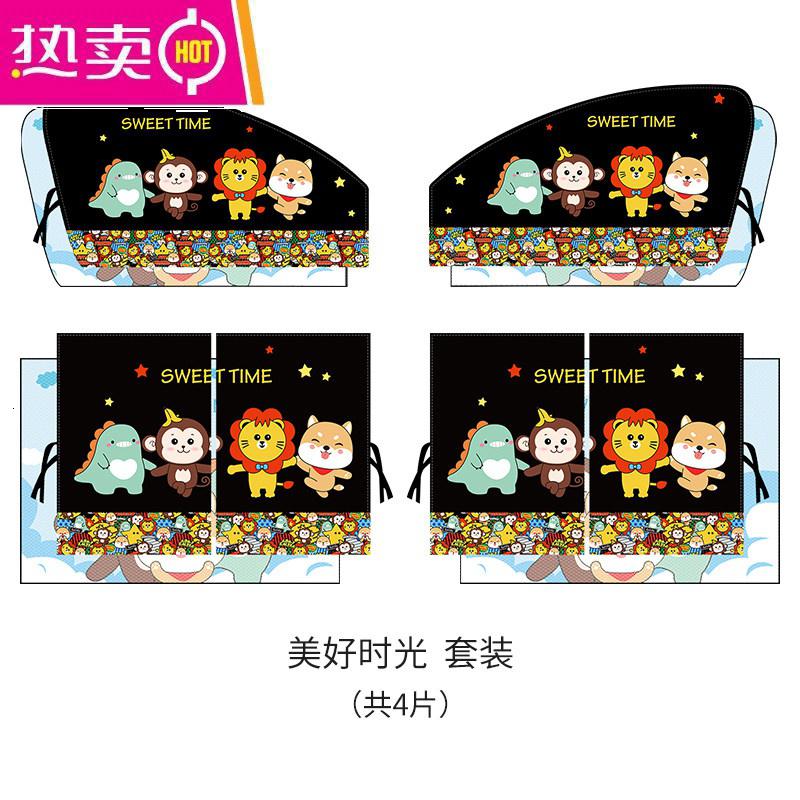 汽车遮阳帘防晒隔热遮阳板车窗宝宝挡光神器磁吸式伸缩帘车载窗帘_432 美好时光-套装(四片装)