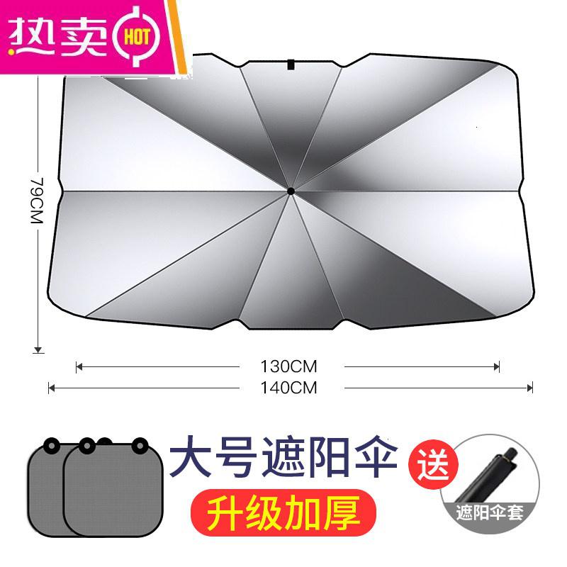 汽车遮阳帘前挡风玻璃防晒隔热神器停车用车窗罩车载窗帘板遮阳伞_63 加厚款-大号★SUV三厢适用(送侧挡2张+皮套)