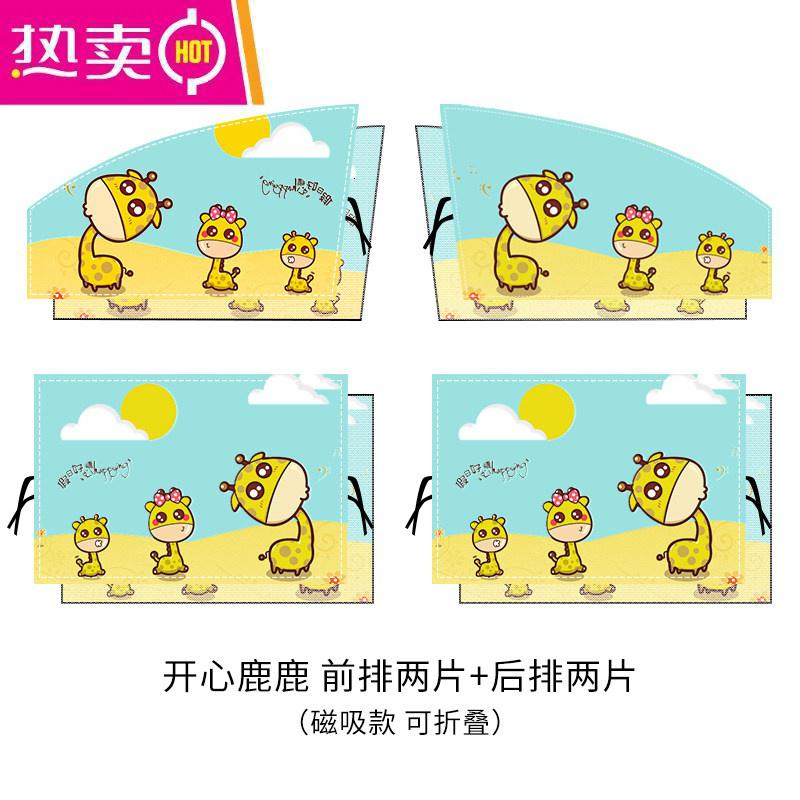 汽车遮阳帘儿童防晒隔热挡车窗宝宝遮光板车用神器磁吸车载侧窗帘_979 开心鹿鹿【全套】双层网纱强铷磁铁(4片装)
