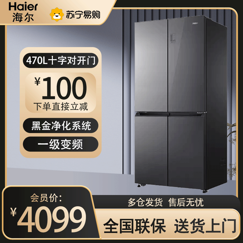 海尔(Haier)470升十字对开门嵌入冰箱 阻氧干湿分储 母婴三档变温 彩晶面板 BCD-470WGHTD5DS1