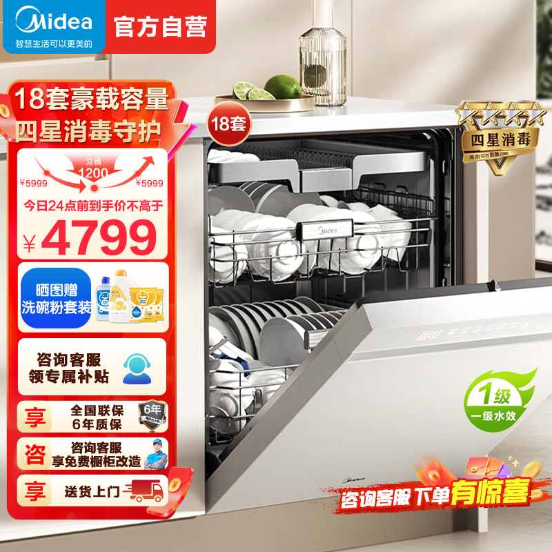 美的(Midea)万向X6S Max洗碗机嵌入式升级18套七星消杀四星消毒一键洗烘蒸汽单消毒UV杀菌105℃热风烘干