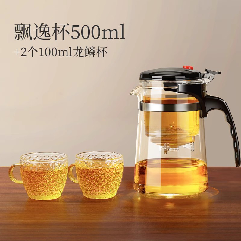 茶壶泡茶家用茶具茶水分离杯子2025新款玻璃茶杯专用飘逸杯泡茶壶 飘逸杯500ML+2个龙鳞杯