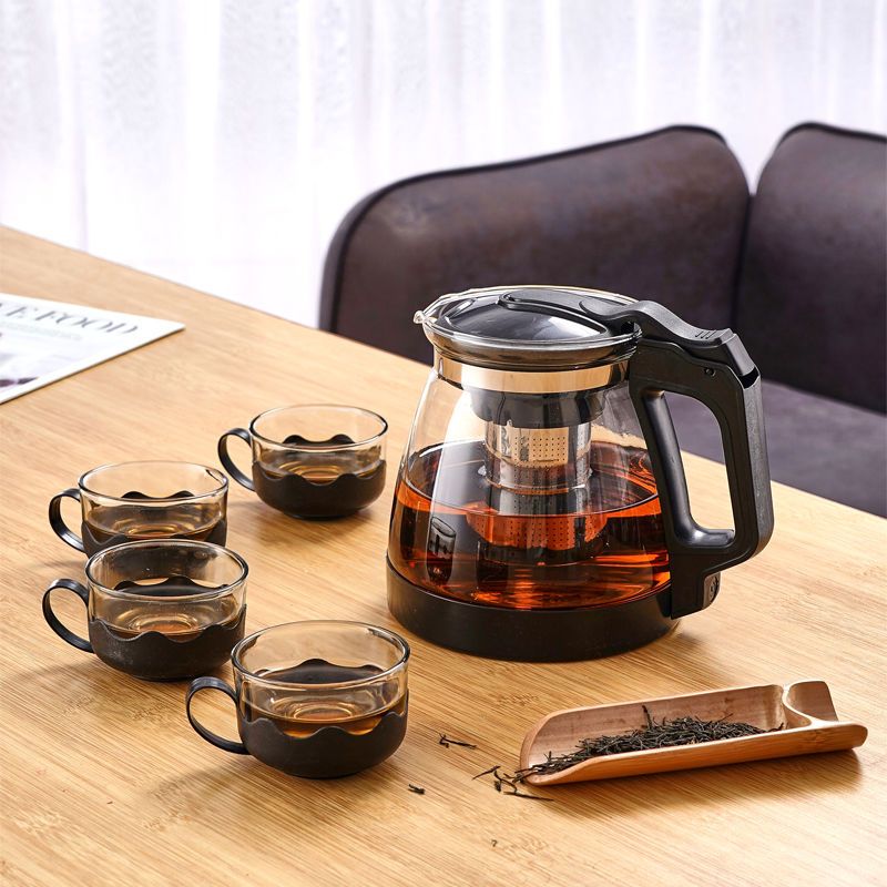 大容量加厚耐热玻璃茶壶茶水分离简约风格单壶茶具 大容量加厚茶壶 茶水分离茶具 简约风格茶壶 A089B单壶2000ML黑色+4直筒杯
