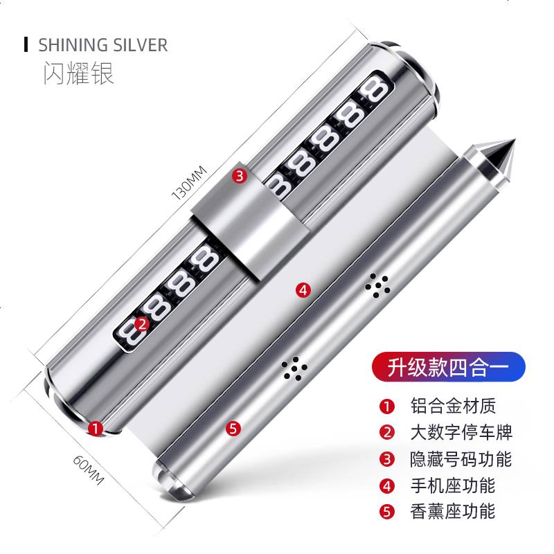临时停车牌挪车电话号码牌移车小车内个性汽车用品装饰靠创意车载 【升级款四合一可隐藏+手机架+安全锤+香薰】流光银