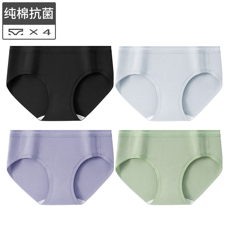 恒源祥内裤女士纯棉少女式日系中腰无痕棉三角透气短裤头女 175/2XL 钨黑+浪漫蓝+雾蓝+藤绿色