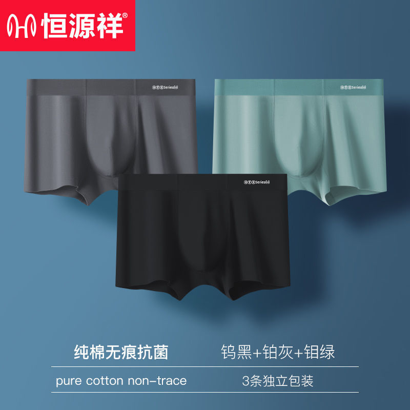恒源祥男士内裤纯棉透气平角裤男生大码宽松棉无痕四角短裤 170/L 【3条装】钨黑+铂灰+钼绿