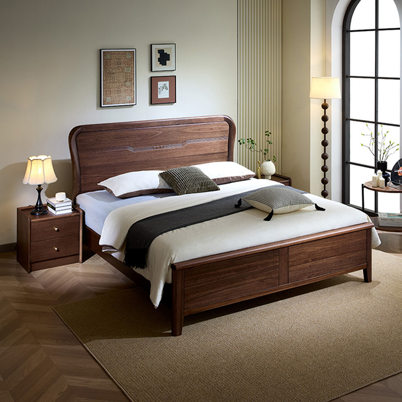 青木川 简约现代南美黑胡桃木全实木床1.8米双人床1.5米两米单人床大板直拼卧室小户型家用休闲成人结婚榫卯床架带软包 框架床+床垫 1.5*2米