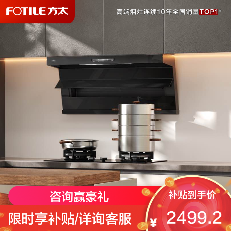 方太(FOTILE)新品欧式吸油烟机家用27大风量挥手智控智感净味顶吸式环隐速吸油烟机F5