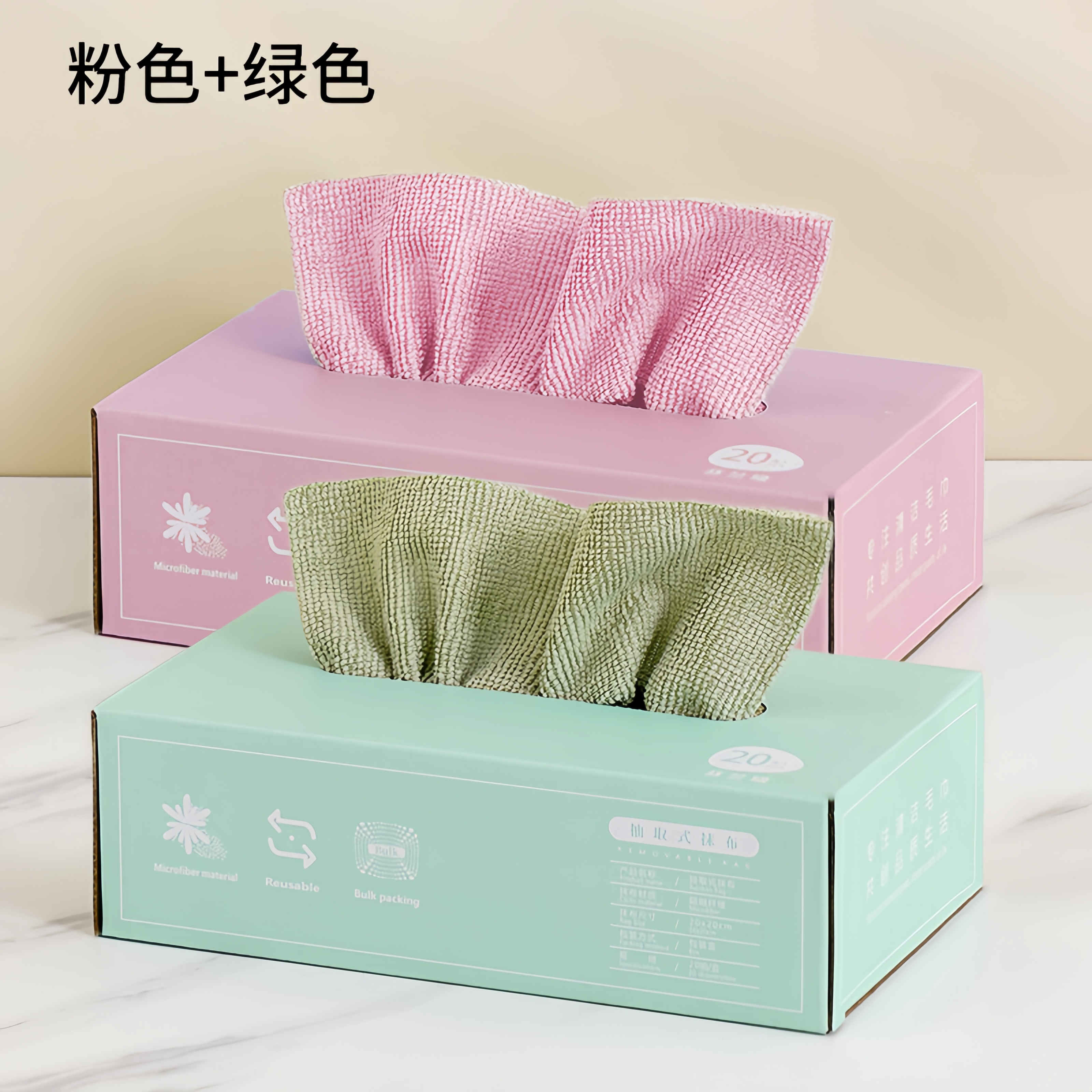 抹布厨房一次性懒人抹布加厚可水洗洗碗布干湿两用抽取式百洁布 升级加厚款-粉+绿共40抽-可重复使用