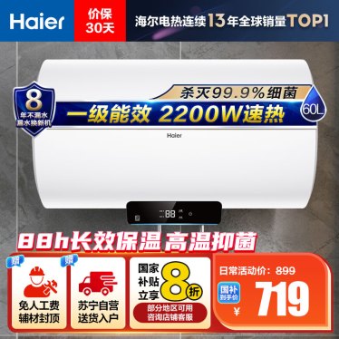 海尔(Haier)[Eco1]60升电热水器 金刚搪瓷胆 国家补贴20%一级能效节能2200W高效加热长效保温抑菌