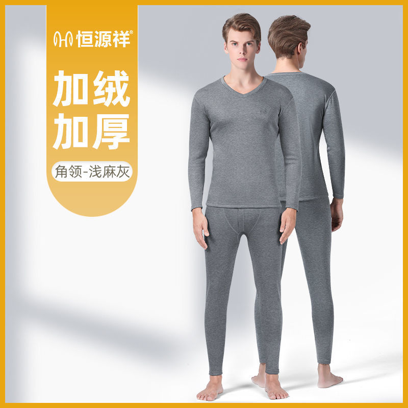 恒源祥男士保暖内衣加绒加厚大码打底套装棉衣秋衣秋裤男款秋冬季_508 165/M 套装HZ2+角领+加绒+加厚
