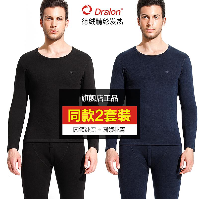 恒源祥保暖内衣男士加厚加绒套装德绒自发热冬季无痕打底秋衣秋裤_75_833 180/2XL【99天质保德国发热纤维】 圆领(纯黑+花青)