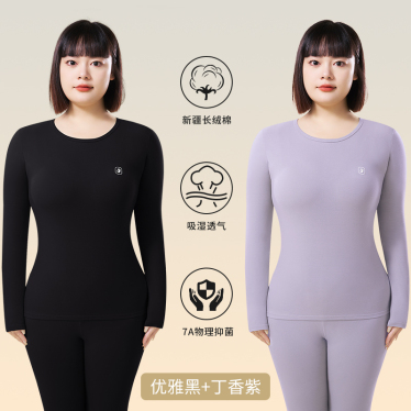 南极人加肥加大码秋衣卫生裤套装女薄款胖mm200斤纯棉毛衫发热衣 优雅黑+丁香紫50S新疆棉+7A抑菌 XL适合120-135斤
