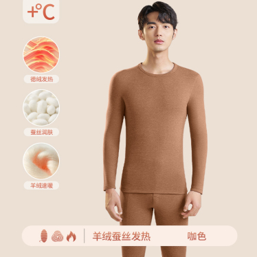 南极人青少年保暖内衣男款套装加绒加厚德绒无痕打底秋衣秋裤冬季 包边款咖色 XXXL(推荐150-170斤)赠运费险