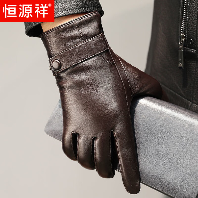 恒源祥真皮手套男冬天骑行冬季加绒触屏保暖加厚羊皮手套男士开车 男士真皮手套--手腕八字款棕色XL