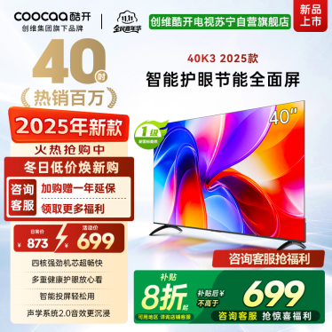 创维酷开电视K3 2025款 40英寸 一级能效 多重健康护眼全面屏智能投屏电视 40P3F
