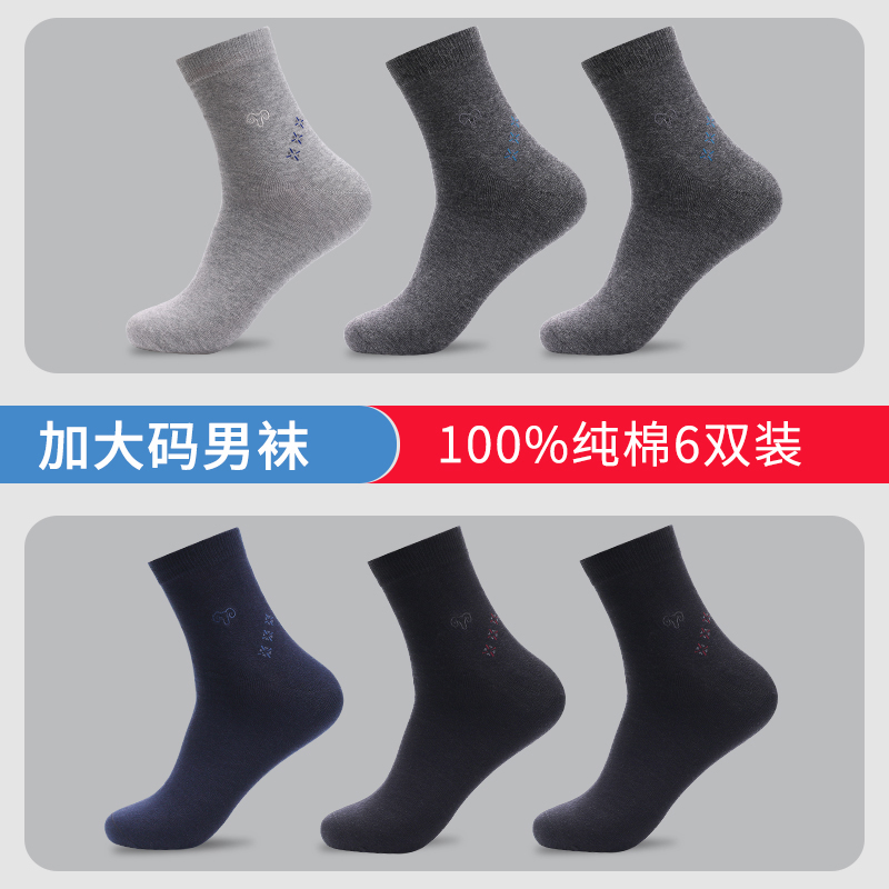 恒源祥袜子男纯棉防臭加大码中筒袜44春夏45秋冬46大号47码男士袜_457 男士厚款43-47码 2黑2深1藏青1浅灰100%纯棉