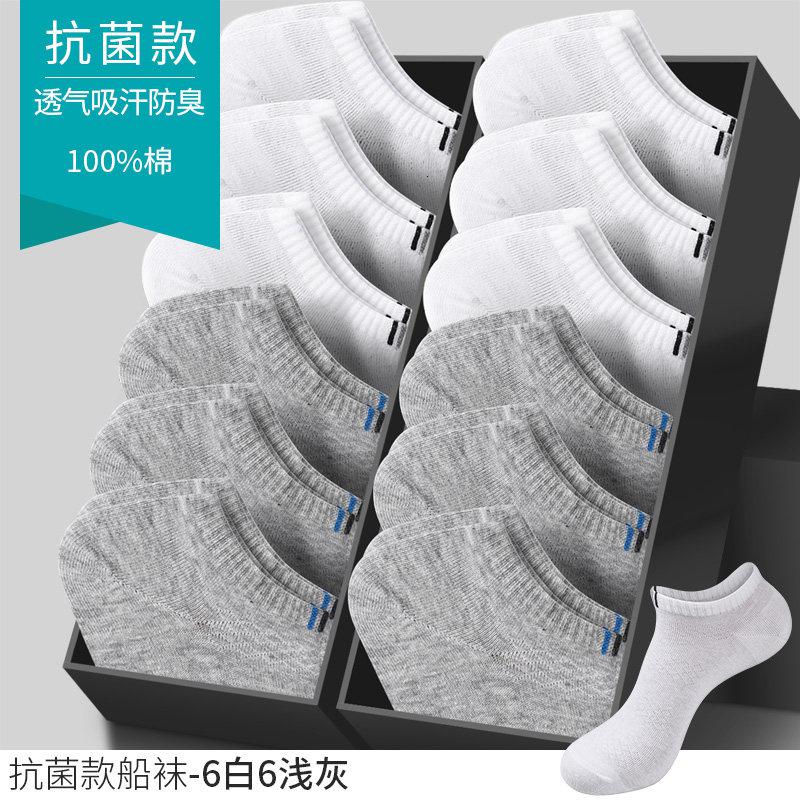 恒源祥袜子男士短袜船袜夏天薄款纯棉防臭吸汗透气低帮全棉春夏季_376 100%纯棉防臭男船袜 抗菌提花款-6白6浅灰