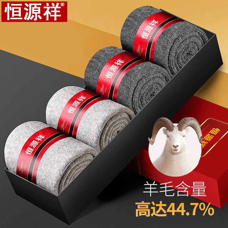 恒源祥男士羊毛袜秋冬季加厚保暖中筒羊毛绒袜冬天黑色羊毛男袜子_827 均码盒装【羊毛含量44.7%】 深灰+浅灰2深灰2浅灰