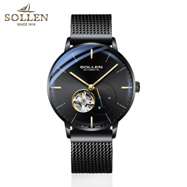 梭伦(SOLLEN)手表男自动机械表新款时尚商务休闲男表潮防水概念简约超薄SL-305 全黑黑面
