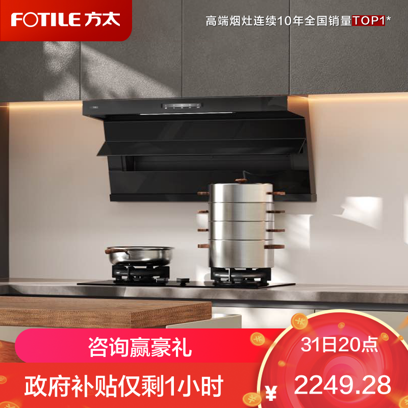 方太齐平顶侧双吸抽吸油烟机大吸力7字型油烟机一级能效L2单烟机 26风量