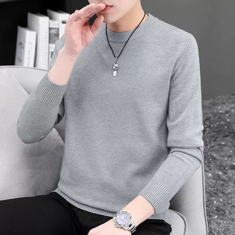 2023新款圆领毛衣男韩版秋冬季潮流内搭针织打底衫长袖黑色毛线衣_846 3XL推荐【150-165斤】 浅灰色【圆领】毛衣