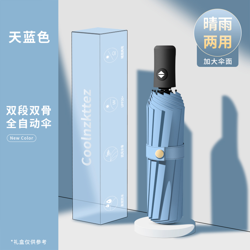 全自动雨伞女晴雨两用加大号加固折叠防紫外线遮阳伞男太阳伞一键 渐变海盐蓝40根玻纤伞骨晴雨两用加固全自动