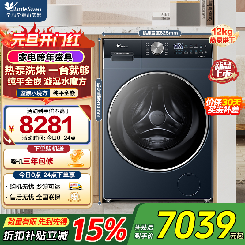 小天鹅(LittleSwan)热泵洗烘一体 滚筒洗衣机全自动 12KG大容量 水魔方 TDH12K300
