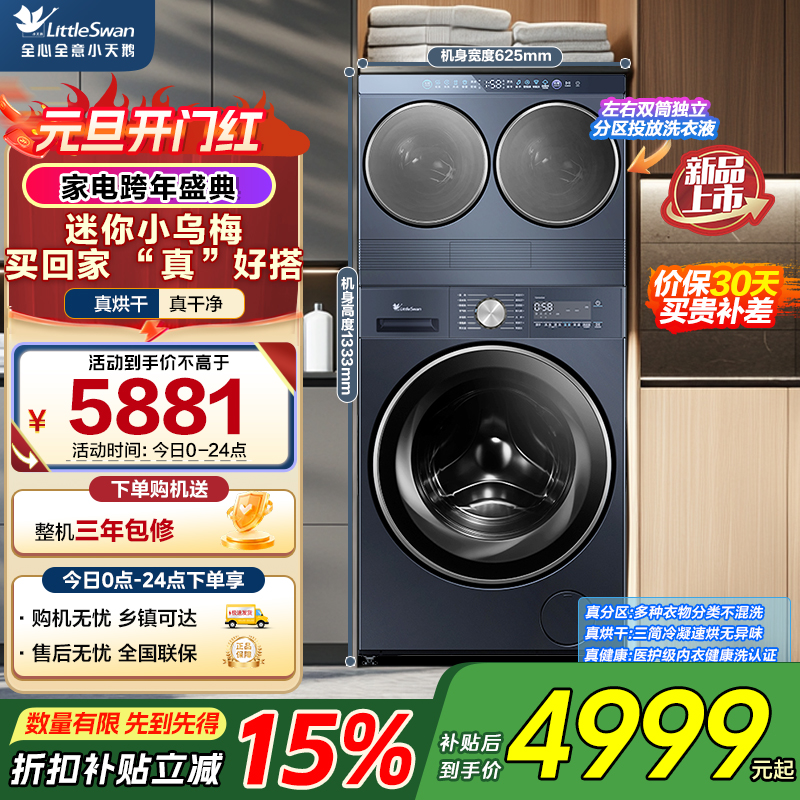 小天鹅(LittleSwan)滚筒洗衣机分区洗迷你小乌梅懒人三筒洗衣机TNDD20-08AIDE+TD10VE00