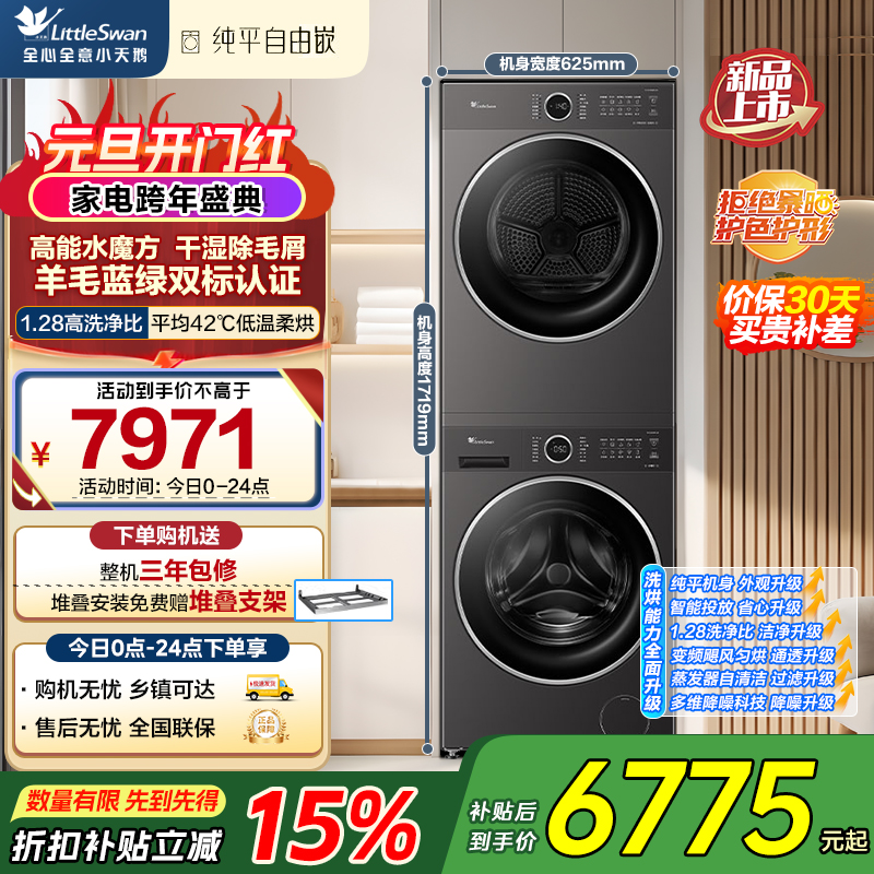 小天鹅 水魔方洗烘套装 变频热泵烘干机 纯平自由嵌 智能投放 TG10V628PLUS+TH10VH628PLUS